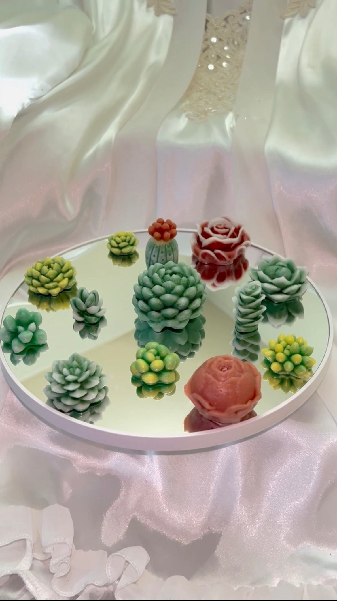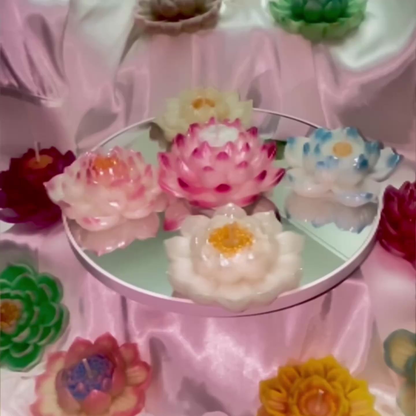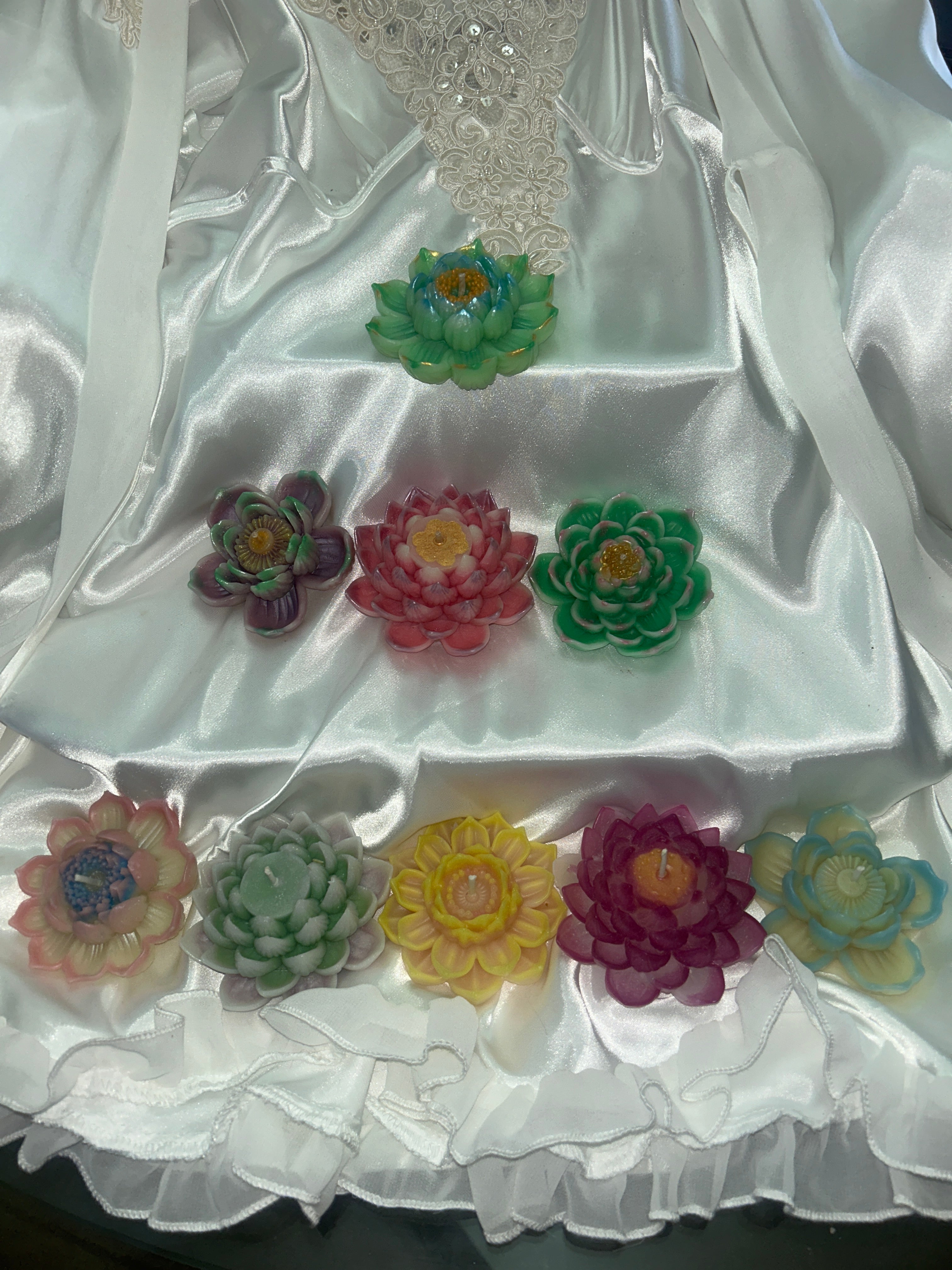 3D Lotus Candle, 5 piece set in Whimsical White Frosted Petal Tips