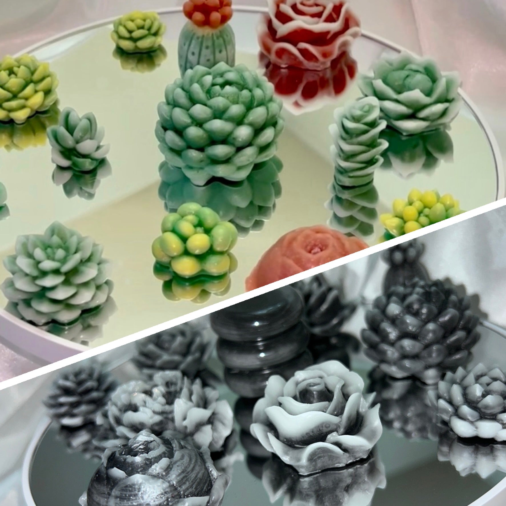 3D Floral Peaking Meadow Candle Set, Spring Green Leaves
