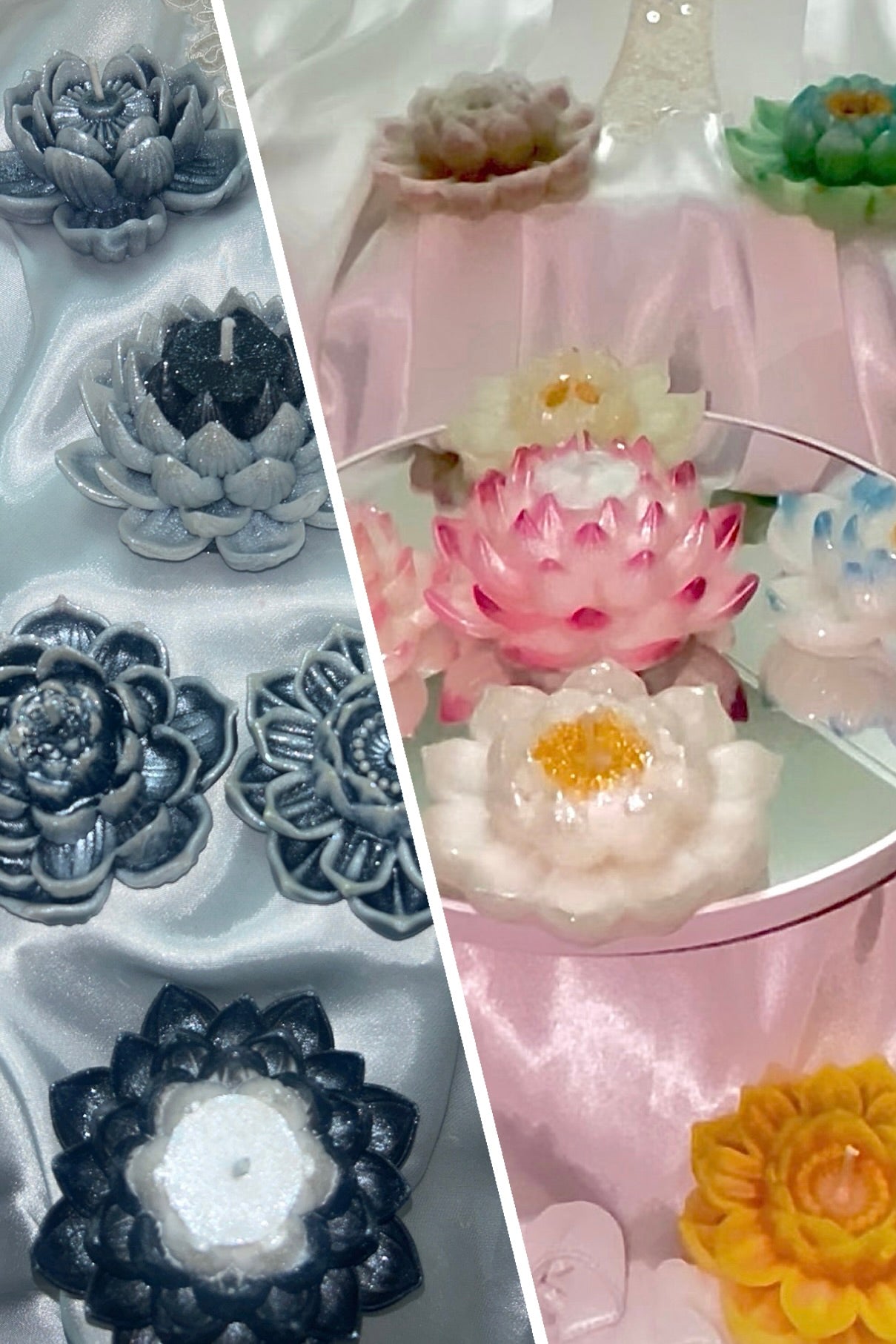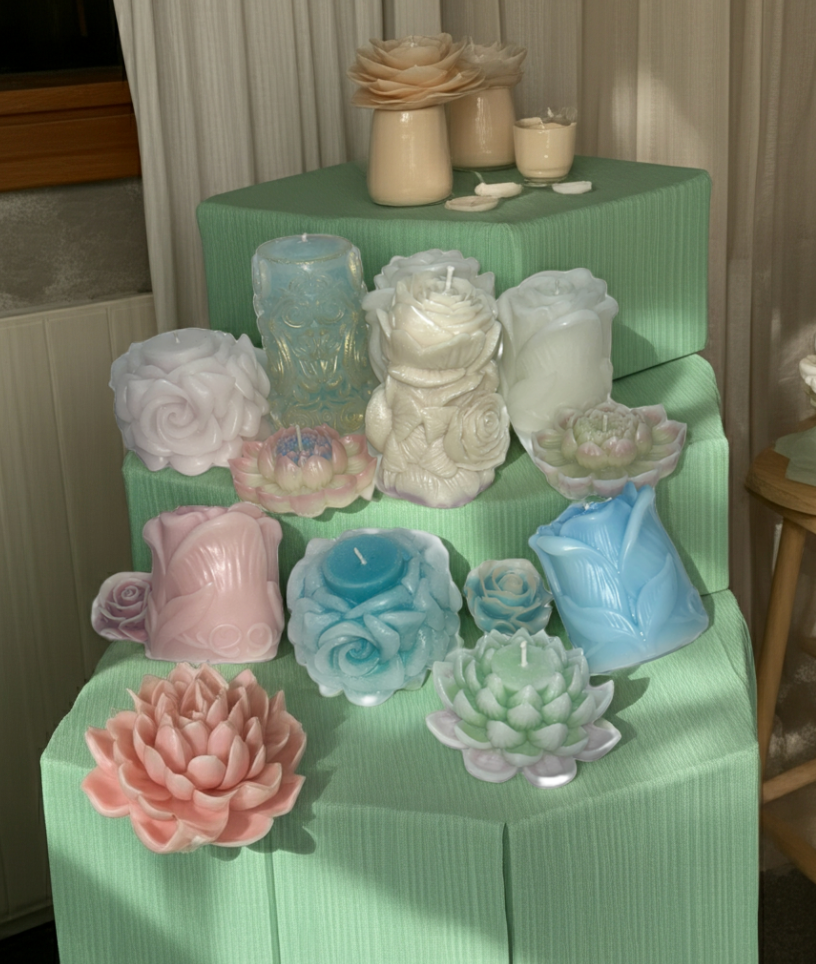 3D Crown Edged Chubby Rose Candles, Fairy Pink, 2pc set!